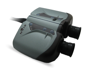 NVIS Ranger Virtual Binocular Display with dual SXGA OLED microdisplays, adjustable focus, up to 47 degree diagonal FOV, central hinge IPD adjustment, and 4 programmable USB joystick buttons with z-axis scroller. External mounting plate accommodates industry standard motion sensors. Optional tripod mount available.